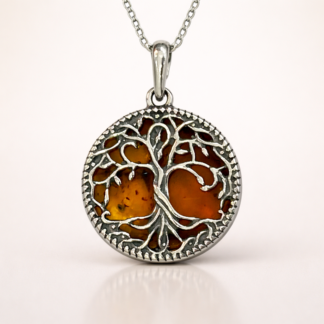 Kors i sterlingsølv med rav.