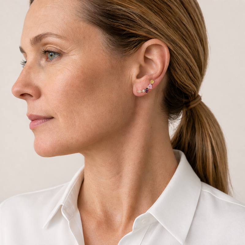 Farverige bue øreringe.