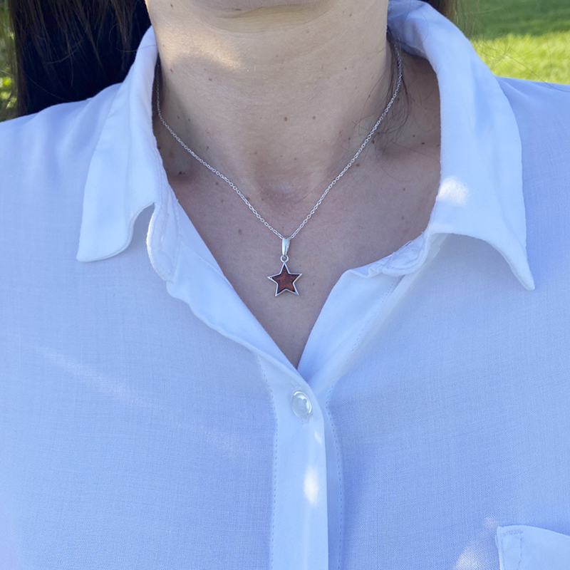 Ravstjerne halskæde i sterlingsølv.